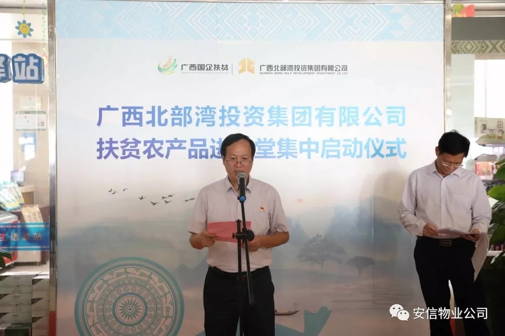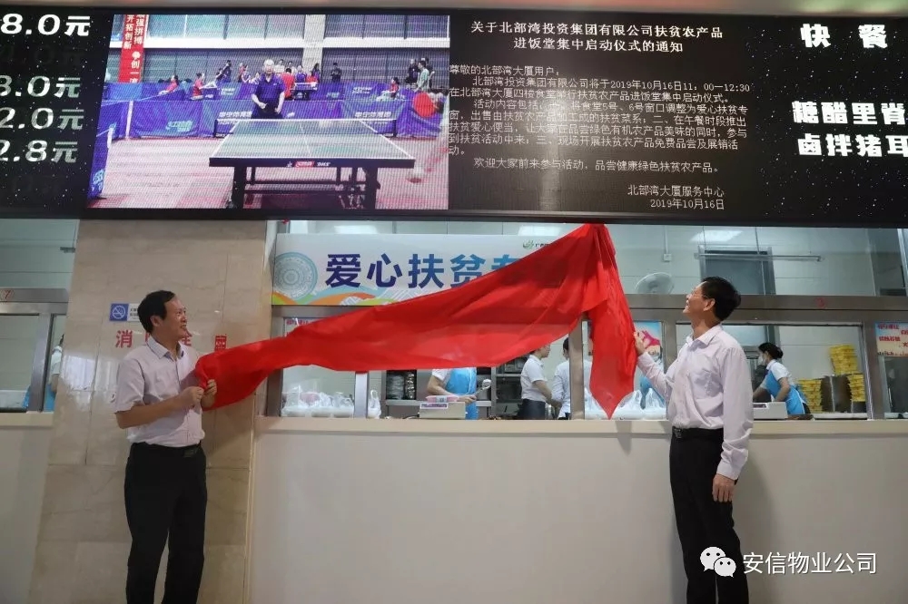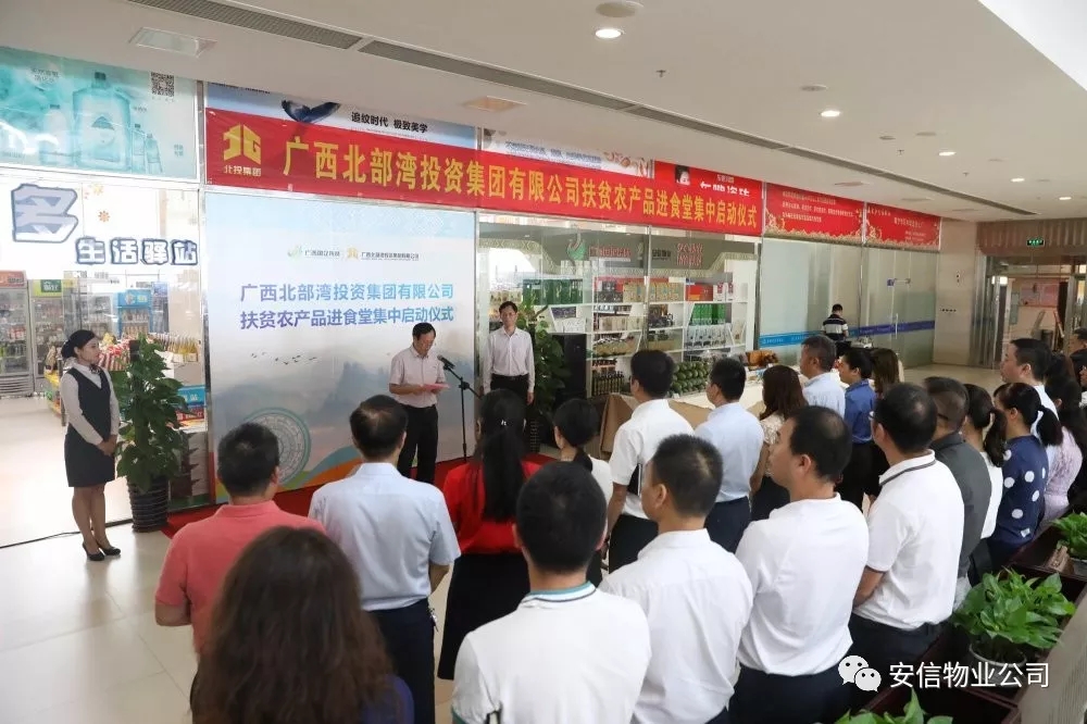 10月16日上午,扶貧農(nóng)產(chǎn)品進(jìn)食堂集中啟動(dòng)儀式活動(dòng)在北部灣大廈四樓食堂舉行,此次活動(dòng)由廣西北部灣投資集團(tuán)有限公司主辦,廣西安信物業(yè)服務(wù)有限公司承辦。