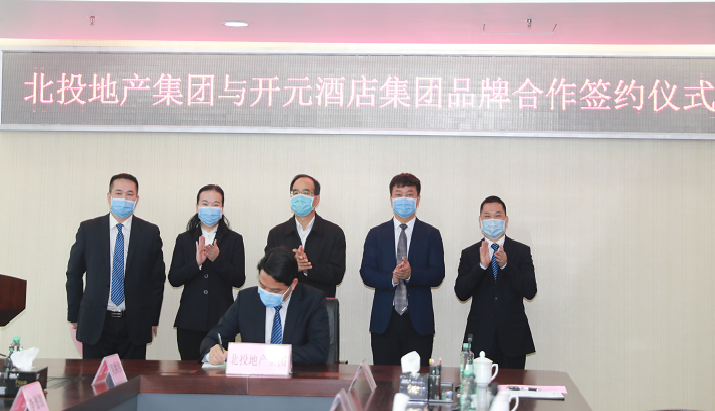 北投地產集團黨委副書記、總經理吳洪偉代表北投地產集團與對方簽訂了品牌與經營管理合同。北投地產集團黨委副書記、工會主席陳莉,紀委書記丘強,副總經理廖乃凱;浙江開元酒店管理股份有限公司副總裁兼董事會秘書李東林,副總裁陳文放,業務發展部總經理陳偉峰,杭州開元頤居酒店管理有限公司總經理陳開富,副總經理陳教敏見證簽約。