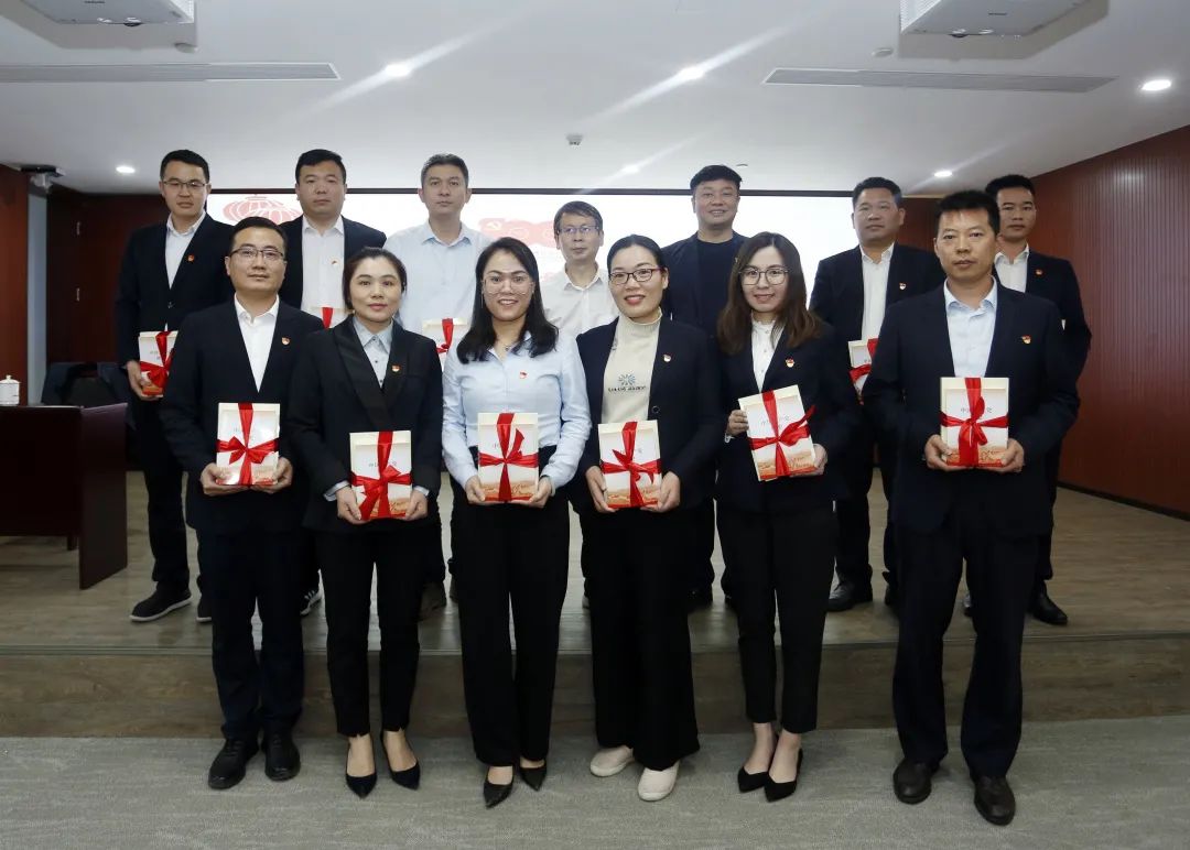 培訓班上,廖勝平、左皓為集團公司各黨支部書記代表授黨史學習書籍。
